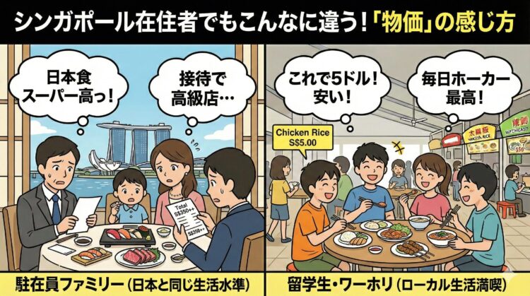 日本でも「大学生」と「社会人のファミリー層」では、お金の使い方が全く違うのは当然のことです。社会人になれば、付き合いで利用するレストランのランクが上がり、家族の健康を考えて選ぶ食材の基準も変わります。この「生活ステージの違い」が、物価の感じ方に大きく影響しています。