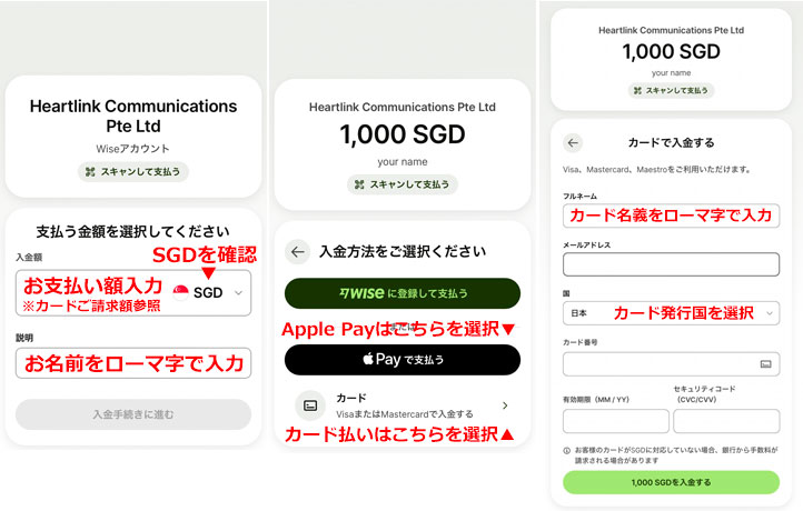 オンライン決済サービス大手「Wise」を介してカード決済できます。